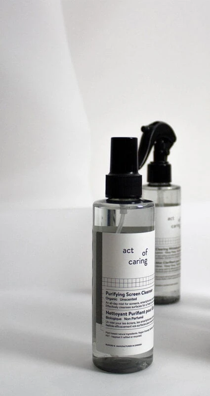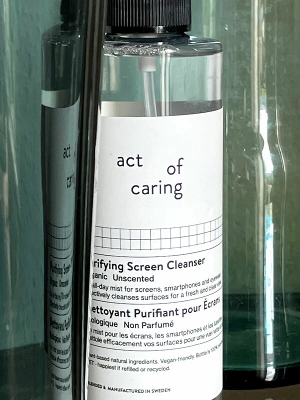 Act of Caringin Purifying Screen Cleanser on hellävarainen ja turvallinen näytönpuhdistusaine, jonka avulla puhdistat niin älypuhelimen tai tietokoneen näytön kuin silmälasien linssitkin. Vehnäpohjainen, tuoksuton suihke irrottaa lian ja desinfioi pinnat tehokkaasti ja luonnollisesti.