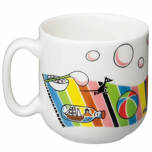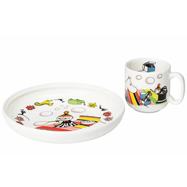 Arabian keraamiseen Pikku Myy -lastenastiastoon kuuluu pienille ruokailijoille sopiva lautanen ja muki, jotka on muotoillut suunnittelija Richard Lind. Lautasessa Pikku Myy keskittyy saippuakuplien puhalteluun, kun Muumit piilottelevat eläintarhasta karanneita eläimiä. Mukin kuvituksessa seuraan on liittynyt Muumipeikko ja eläinystävä. Astiasto on konepesun, pakkasen-, mikron-, ja uuninkestävä.