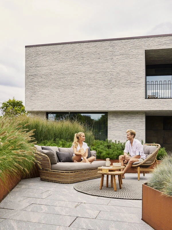 Cane-linen Basket-sohva tarjoaa lokoisan lekottelupaikan terassilla, parvekkeella tai puutarhassa – sen syvään istuinosaan on mukava käpertyä nauttimaan leppoisista kesäpäivistä hyvän kirjan ja virkistävän juoman kanssa. Sohvan ilmeeseen on haettu innoitusta perinteisistä rottinkikalusteista, mutta sen materiaalit on valittu erityisesti ulkokäyttöä ajatellen, joten ne kestävät hyvin myös vaihtelevaa kesäsäätä haalistumatta tai menettämättä muotoaan: sohvan teräsrunkoa verhoaa helppohoitoinen polyrottinki, ja kokonaisuuden kruunaavat muhkeat, nopeasti kuivuvalla vaahtomuovilla täytetyt istuintyynyt. Basket-sohvan on suunnitellut Søren Rose Studio.
