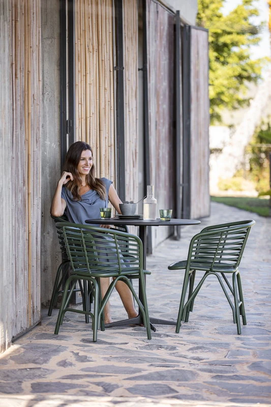 Cane-linen Blend-ulkotuoli tuo hienostuneen lisän kesämökin, terassin tai puutarhan kalustukseen. Foersom & Hiort-Lorenzenin suunnittelema tuoli muistuttaa muotoilultaan rottinkikalusteita tai muita perinteisiä puutarhatuoleja – tosiasiassa se on kuitenkin valmistettu kestävästä ja helppohoitoisesta alumiinista. Terassituolin olemus on moderni ja erottuva, mutta siinä on silti samaan aikaan jotain etäisesti tuttua. Ulkotilojen ohella Blend-tuoli sopii mainiosti käytettäväksi myös sisätiloissa, ja halutessaan siihen saa lisämukavuutta erikseen myytävällä istuintyynyllä.