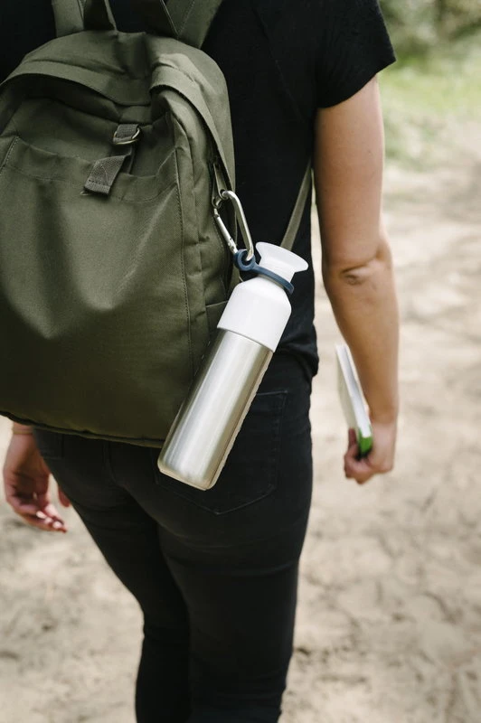 Dopper-juomapullon ripustuslenkki pitää vesipullon aina kätesi ulottuvilla. Tukevalla ja kevyellä alumiinisella karbiinilla varustetun lenkin avulla voit kiinnittää Dopper-pullosi roikkumaan vaikkapa laukusta tai vyöstä. Tummansininen väri viimeistelee lenkin tyylikkään ilmeen.