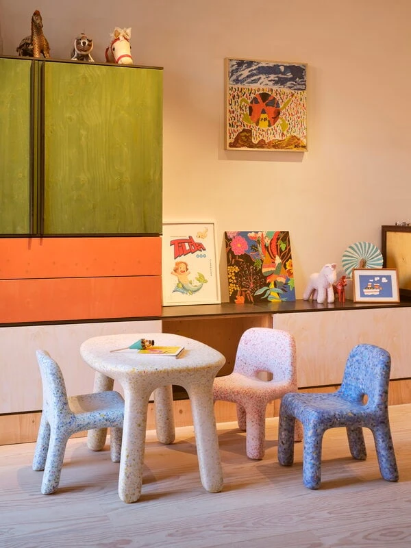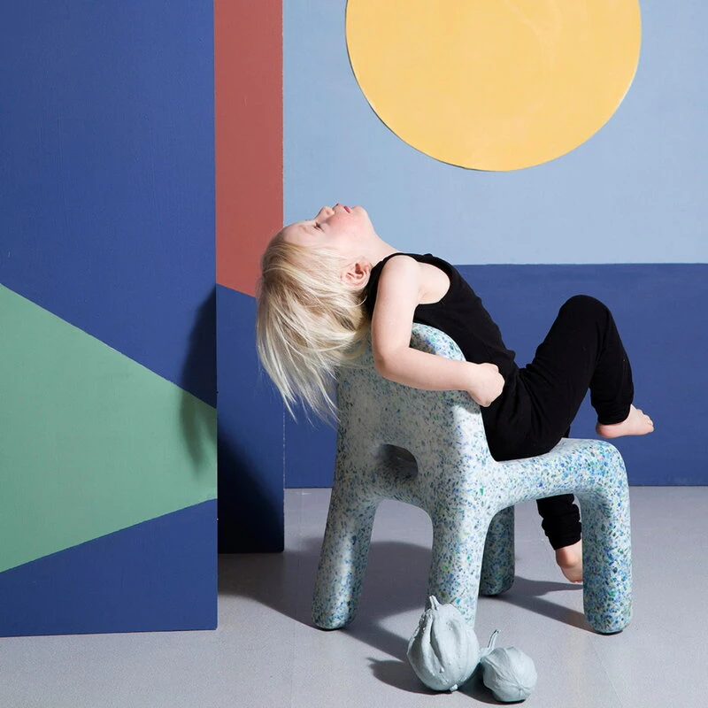 EcoBirdyn Charlie-lastentuolilla perheen pikkuväen kelpaa istua ja taiteilla, ruokailla tai tehdä läksyjä. Kevyt tuoli on turvallinen valinta kaikkein nuorimpienkin istujien alle: tuoli on nimittäin keveydestään huolimatta suunniteltu niin vakaaksi, ettei se pääse kupsahtamaan nurin hurjimpienkaan leikkien tai villinkään temppuilun lomassa. Värikkäillä pilkuilla koristellun tuolin materiaali pääsee yllättämään, sillä Charlie-lastenistuin on valmistettu käytetyistä kierrätysmuovileluista. Pelkistetty, pehmeä muotokieli ja leikkisät värisävyt miellyttävät myös vanhempien esteettistä silmää, ja Charlie-tuoli sopiikin mainiosti osaksi sekä lastenhuoneen että kodin muiden tilojen sisustusta.
