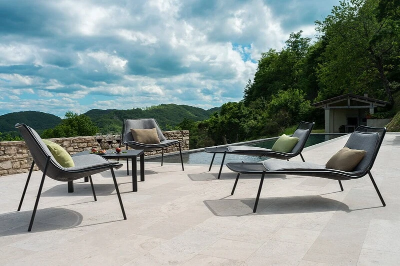 Emun Round-aurinkovuoteen pysäyttävä muotoilu syntyy henkäyksen kevyestä teräskudoksesta ja sitä kehystävästä tukirakenteesta, joka kuin piirtää ilmavalle rungolle hahmon ja ääriviivan. Christophe Pilletin suunnitteleman aurinkovuoteen pehmeä, pyöristetty muoto kutsuu lepäämään ja viihtymään ja sen elegantti ilme sopii monenlaiseen sisustukseen niin ulkona kuin sisällä.