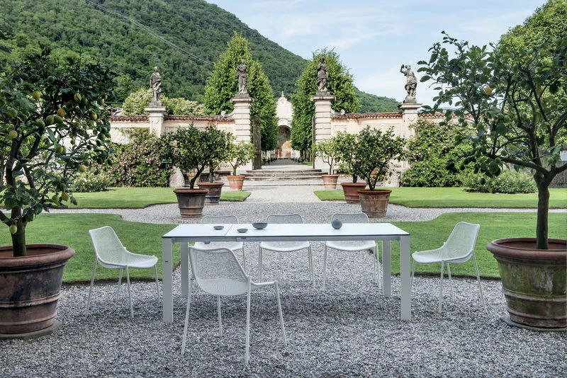 Emun Round-tuolin pysäyttävä muotoilu syntyy henkäyksen kevyestä teräskudoksesta ja sitä kehystävästä tukirakenteesta, joka kuin piirtää ilmavalle rungolle hahmon ja ääriviivan. Christophe Pilletin suunnitteleman tuolin pehmeä, pyöristetty muoto kutsuu lepäämään ja viihtymään ja sen elegantti ilme sopii monenlaiseen sisustukseen niin ulkona kuin sisällä.