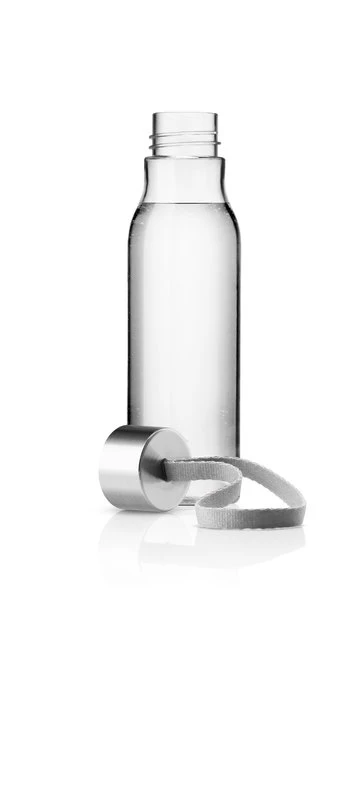 Eva Solon tyylikkäässä vesipullossa juomavesi kulkee näppärästi mukana niin käsilaukussa, jumppakassissa kuin eväsrepussakin. Juomapullon tilavuus on 0,5 litraa ja pullon muovi on elintarvikekäytössä turvallista, sillä se ei sisällä ftalaatteja tai Bisfenoli A:ta. Kätevä korkkiin kiinnitetty kantohihna antaa pullolle ilmettä ja pirteää väriä.