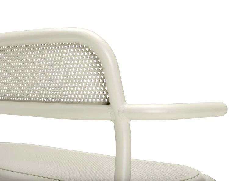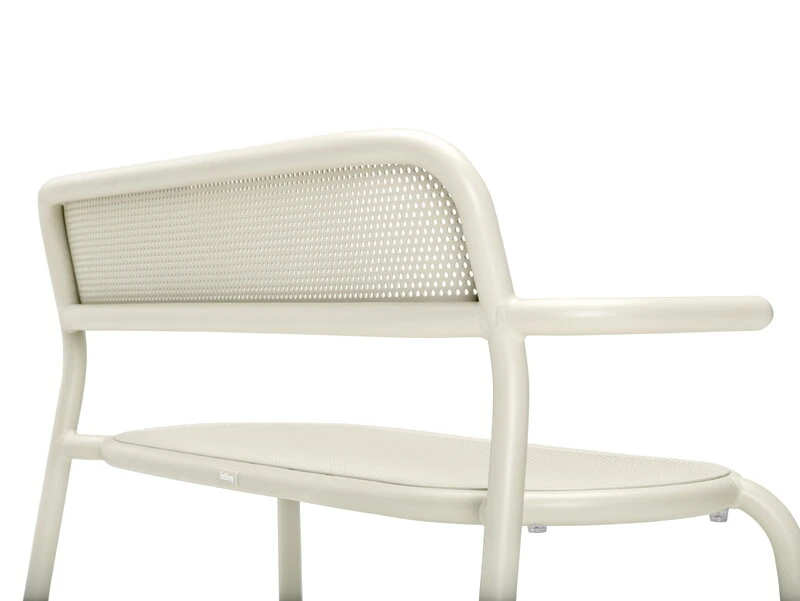 Fatboyn Toní Bankski -penkin muotoilussa on viittauksia sekä rakennusteollisuuteen että klassisiin kahvilakalusteisiin: penkin putkimainen runko muistuttaa suojakaaria, kun taas rei’itetty selkänoja ja istuin tuovat mieleen perinteiset wieniläistuolit.