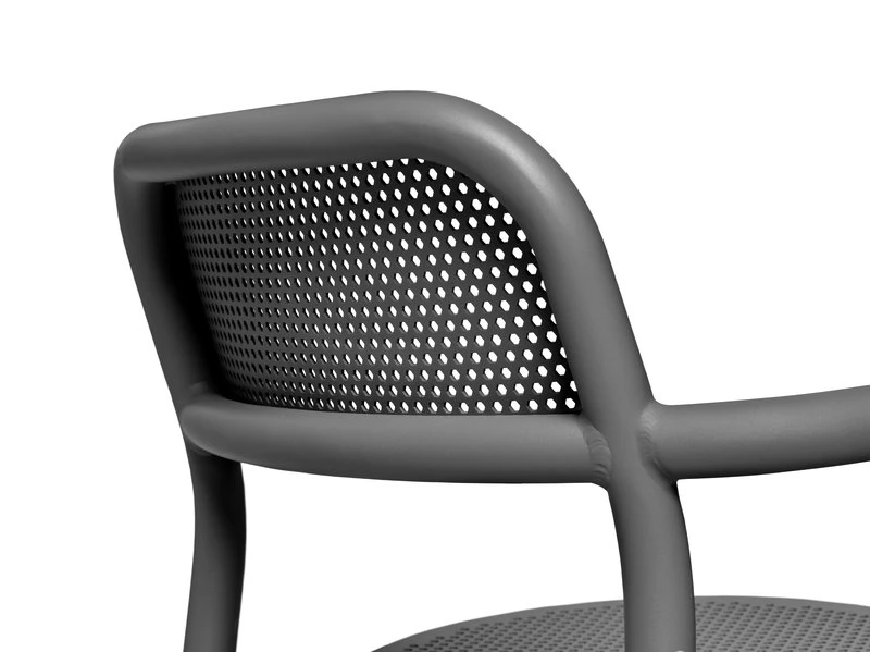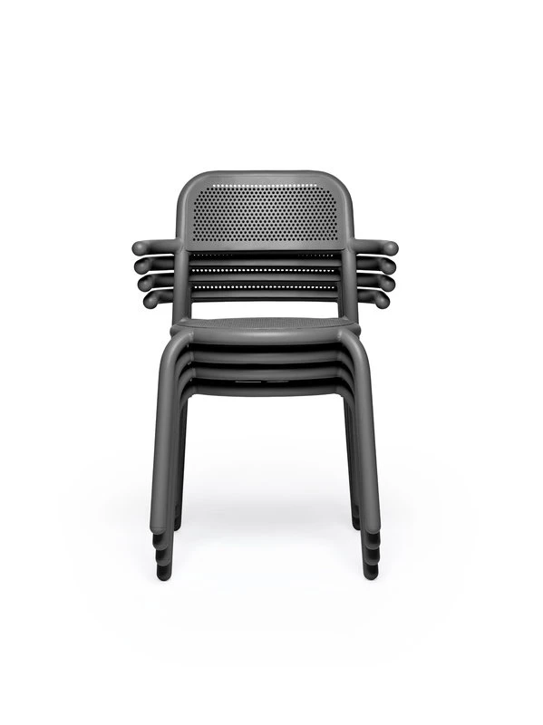 Fatboyn Toní-tuolin muotoilussa on viittauksia sekä rakennusteollisuuteen että klassisiin kahvilakalusteisiin: tuolin putkimainen runko muistuttaa suojakaaria, kun taas rei’itetty selkänoja ja istuin tuovat mieleen perinteiset wieniläistuolit. Käsinojallisia Toní-terassituoleja on mahdollista pinota jopa neljä päällekkäin.
