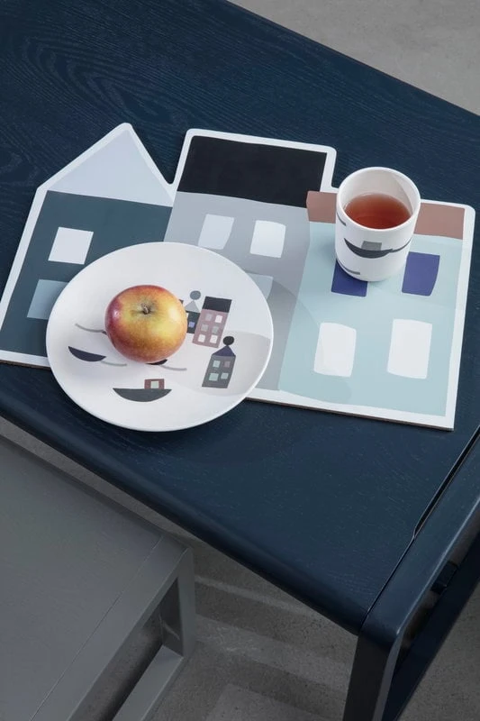 ferm LIVINGin Little Architect -pöytä kuuluu erityisesti perheen pienimmille suunnattuun viehättävään huonekalukokoelmaan, joka on suunniteltu yhteistyössä muotoilutoimisto Says Who:n kanssa. Little Architect -sarjan tuolit, jakkarat, pöydät ja penkit tuovat lastenhuoneeseen tukevaa, arkkitehtonisen kulmikasta muotoilua sekä tyylikkäitä värejä. Pelkistetyn geometriset muodot jättävät tilaa myös pikkuväen mielikuvitukselle. Monikäyttöisen kokoelman kalusteet on valmistettu kestävästä, maalatusta saarnivanerista.