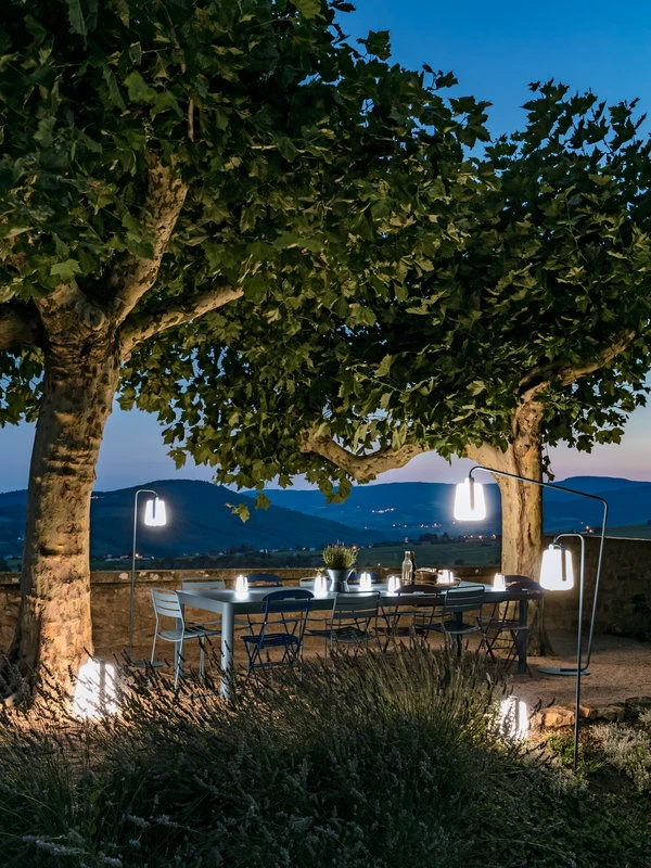 Fermobin Balad-valaisin on oivallinen valinta sekä sisä- että ulkotiloihin. Valaisin on helppo kantaa paikasta toiseen, sillä ladattava LED-valonlähde tekee siitä käytännössä johdottoman. Akku kestää yhdellä latauksella jopa 14 tunnin ajan. Baladilla on selkeä, modernia lyhtyä muistuttava olemus, joka koostuu värikkäästä kantokahvasta ja valkoisesta, sulavalinjaisesta varjostimesta. Sympaattinen Balad tuo valoa tummiin iltoihin ja sopii niin kaupunkiin, mökille, terassille kuin puutarhaankin.