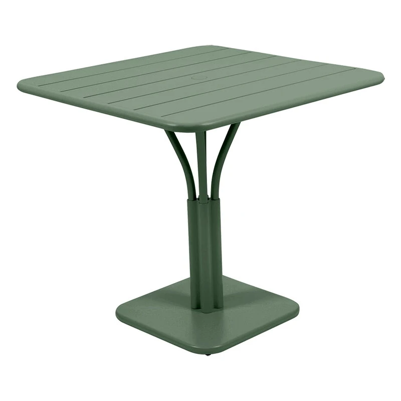 Fermobin Luxembourg-sarjan laippajalkainen pöytä on suunniteltu ulkokäyttöön, ja se sopiikin täydellisesti kaikkiin ulkotiloihin aina kaupunkikodin parvekkeelta kesämökin pihamaalle. Kestävästä mutta kevyestä alumiinista valmistetun terassipöydän kansi muodostuu alumiinisäleiköstä, jonka rakosista vesi pääsee kätevästi valumaan pois, ja sen laippajalka pysyy tukevasti pystyssä teräksisen lisäpainon ansiosta. Pöydän keskellä on myös paikka aurinkovarjolle. Luxembourg-pöydän ympärille mahtuu mukavasti 2-4 istujaa.
