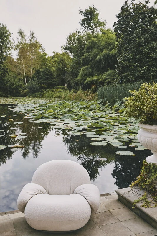 GUBIn Pacha Outdoor -nojatuoli on ulkokäyttöön soveltuva versio ranskalaisen Pierre Paulinin suunnittelemasta tuoliklassikosta vuodelta 1975. Käsinojallisen lepotuolin yltäkylläisen kutsuva muoto takaa mukavan istuma-asennon, ja sen ystävällinen, pelkistetty siluetti sopii monenlaisten puutarhakalusteiden kumppaniksi.