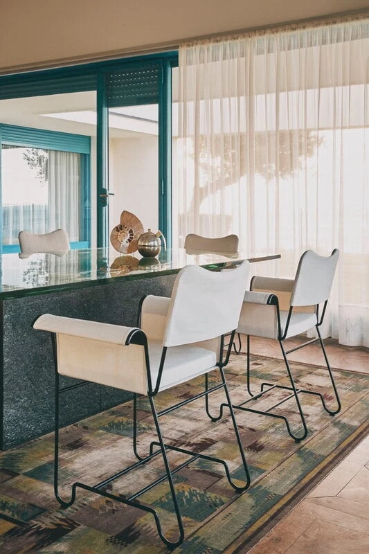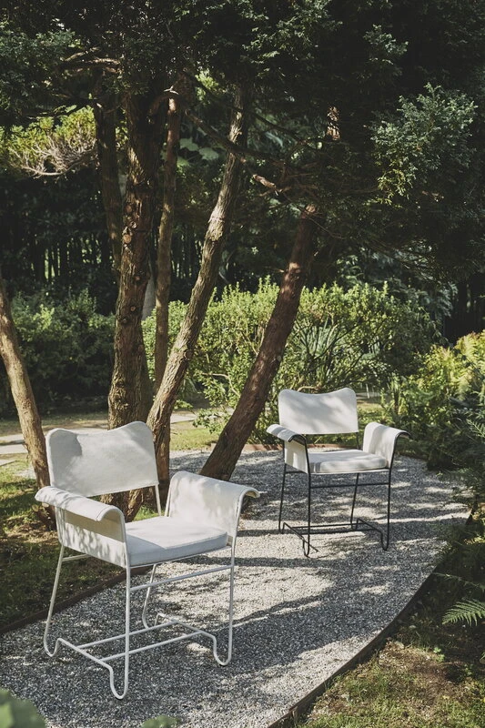 GUBIn Tropique-ulkotuoli henkii menneiden aikojen glamouria. Mathieu Matégotin vuonna 1951 suunnittelema tuoli muodostuu sirosta, leikkisästi kaartuilevasta teräsrungosta ja siihen rennosti pingotetusta istuimesta, jonka muoto tuo mieleen puiden välissä roikkuvan riippumaton. Tuoli on verhoiltu ulkokäyttöön suunnitellulla kankaalla, joka Matégotin alkuperäisestä designista poiketen on vaihdettavissa tehden tuolista entistäkin pitkäikäisemmän.