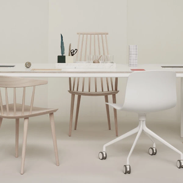 HAYn About A Chair AAC14 -työtuoli muodostuu pyörillä varustetusta, pyörivästä alumiinirungosta ja sen päällä lepäävästä sulavalinjaisesta polypropeeni-istuimesta. About A Chair on HAYn ja muotolija Hee Wellingin yhteistyön tuloksena syntynyt kokoelma silmiinpistävän selkeää ja helposti yhdisteltävää muotoilua. Welling halusi About A Chair -tuolien kanssa astua uudelle tasolle muodon, funktion, käyttömukavuuden, yksityiskohtien ja esteettisyyden yhdistämisessä. Kokoelma syntyi tarpeesta luoda ilmiselvän yksinkertainen tuoli, joka toimisi niin ruokapöydän tai neuvottelupöydän äärellä kuin ravintoloissa, kahviloissa ja toimistoissakin. Selkeiden linjojensa ansiosta About A Chair -tuolit asettuvat helposti monenlaisiin ympäristöihin ja yhdistyvät mitä erilaisimpien huonekalujen kanssa.