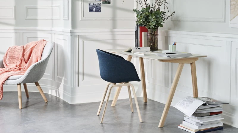 Copenhague CPH 90 -työpöytä kuuluu HAYn Copenhague-kalustesarjaan, jonka ovat suunnitelleet Ronan ja Erwan Bouroullec. Työpöytä on valmistettu saippuakäsitellystä tammesta ja siinä on linoleumikansi. Molemmille materiaaleille on ominaista patinoitua käytössä, ja puuosien saippuakäsittely kannattaakin uusia säännöllisesti puun luontaisen kestävyyden lisäämiseksi.