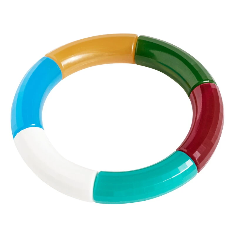 Kyoto Tangon HAYlle suunnittelema rannekoru on ainutlaatuinen asuste arkeen ja juhlaan. Tanskassa suunniteltu ja valmistettu hartsirannekoru ihastuttaa voimakkailla väreillään ja se koristaa kättä niin yksittäin kuin usean erivärisen korun voimin.