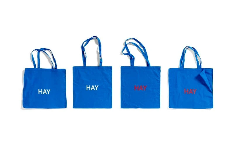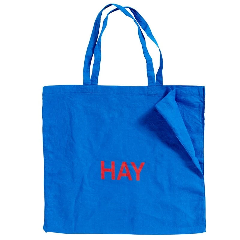 HAYn pirteän sävyinen sininen kassi on valmistettu 100 % puuvillasta, ja sitä koristaa kontrastivärillä painettu HAY-logo. Kätevien pitkien hihnojen ansiosta kangaskassi kulkee matkassa niin kauppaostoksille, urheilutreeneihin kuin kesäiselle piknikille.
