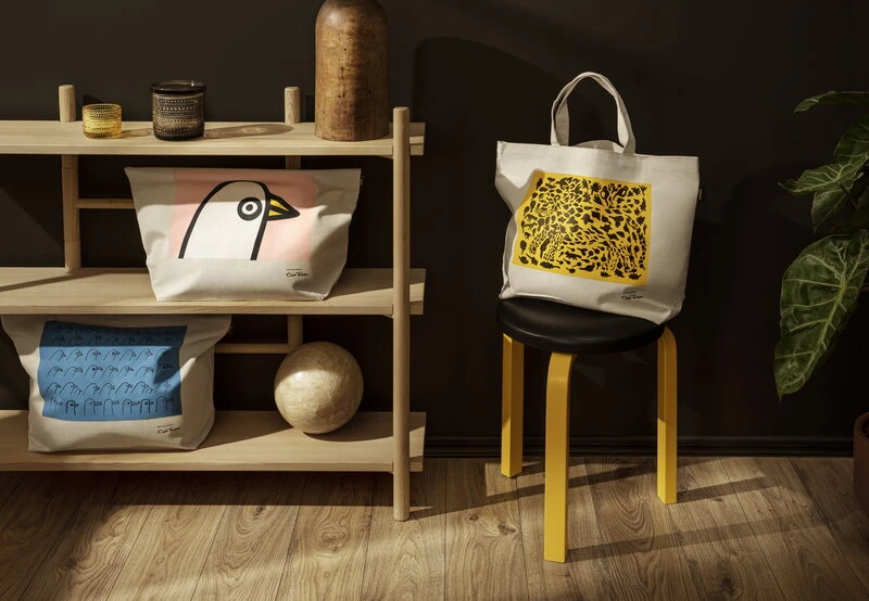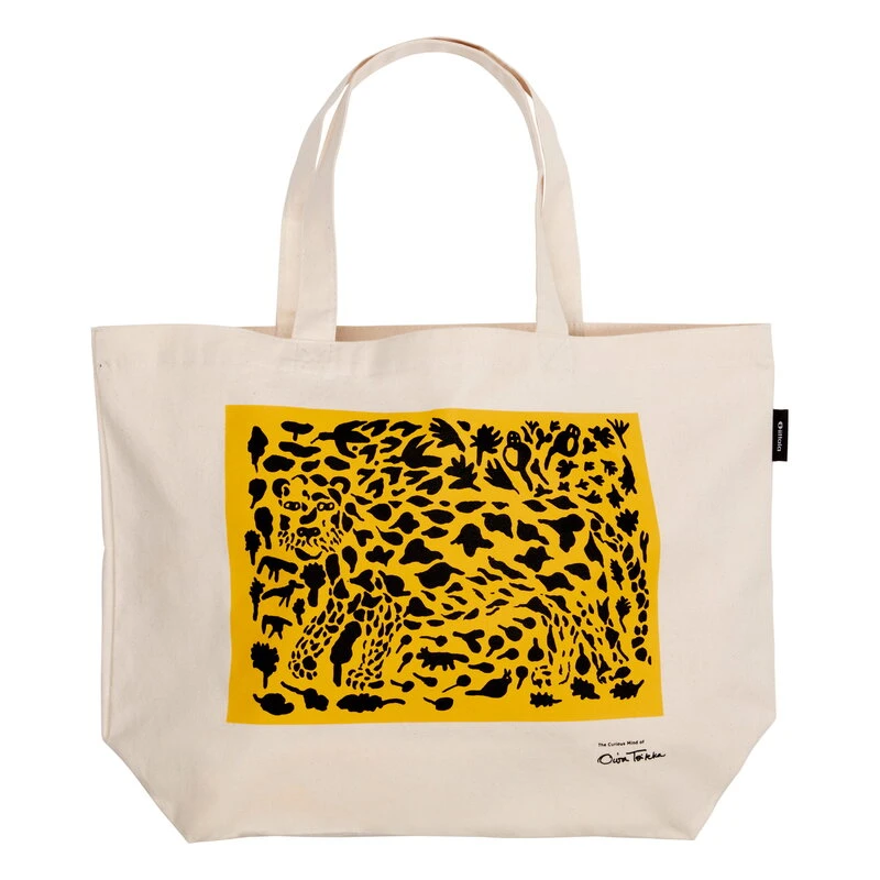 Iittalan Oiva Toikka -kokoelman kangaskassia koristaa graafinen Gepardi-kuvio. Reilun kokoinen kassi on valmistettu paksusta ja kestävästä luomupuuvillasta.