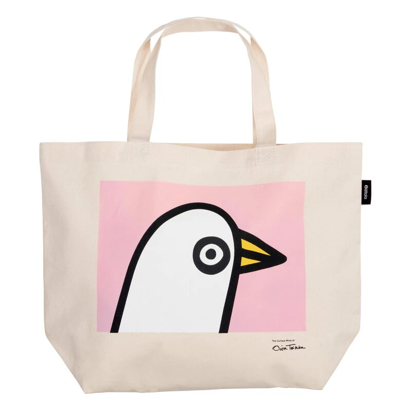Iittalan Oiva Toikka -kokoelman kangaskassia koristaa sympaattinen Lintunen-kuvio. Reilun kokoinen kassi on valmistettu paksusta ja kestävästä luomupuuvillasta.