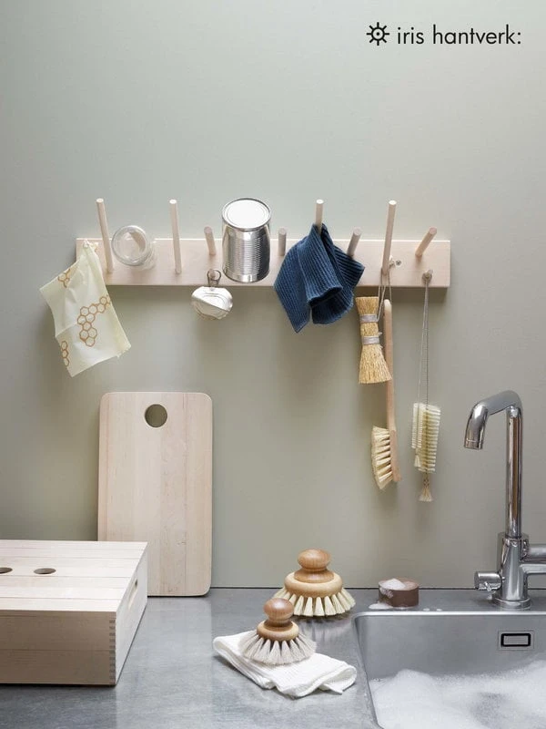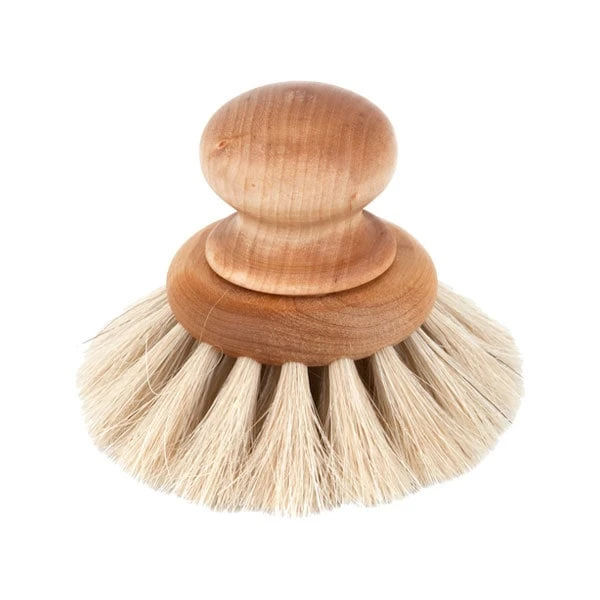 Iris Hantverkin pyöreässä tiskiharjassa on miellyttävä, nuppimainen kädensija, joka tarjoaa tukevan otteen pestäessä astioita ja kattiloita. Harja on valmistettu käsityönä öljykäsitellystä koivusta ja aidoista hevosen jouhista.