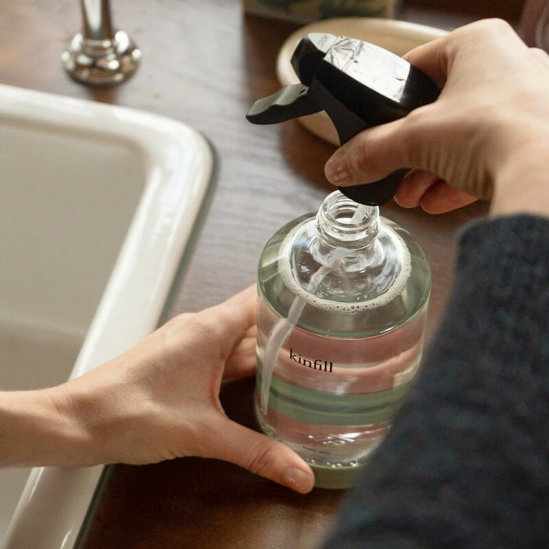 Kinfillin puhdistusaineissa ideana on vähentää kodin muovijätettä: kaada tiiviste suihkepulloon, täytä pullo vedellä ja sekoita kevyesti – käyttövalmiin siivousaineen loputtua tee sama uudelleen! Siivousaineiden täyttöpakkaukset myydään erikseen, joten voit jatkossa hankkia pelkän tiivisteen ja käyttää samaa suihkepulloa vaikka ikuisesti. Ekologiset, biohajoavat puhdistusaineet valmistetaan puhtaista mutta tehokkaista ainesosista, eivätkä ne sisällä sinulle tai ympäristölle haitallisia kemikaaleja.