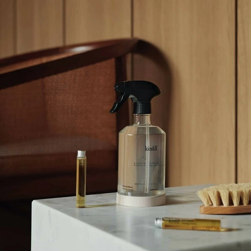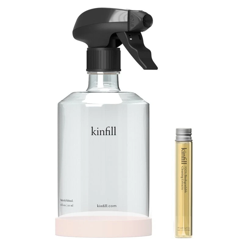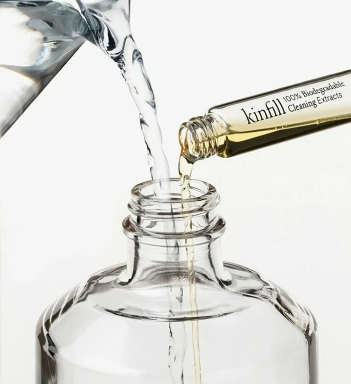 Kinfillin puhdistusaineissa ideana on vähentää kodin muovijätettä: kaada tiiviste suihkepulloon, täytä pullo vedellä ja sekoita kevyesti – käyttövalmiin siivousaineen loputtua tee sama uudelleen! Siivousaineiden täyttöpakkaukset myydään erikseen, joten voit jatkossa hankkia pelkän tiivisteen ja käyttää samaa suihkepulloa vaikka ikuisesti. Ekologiset, biohajoavat puhdistusaineet valmistetaan puhtaista mutta tehokkaista ainesosista, eivätkä ne sisällä sinulle tai ympäristölle haitallisia kemikaaleja.