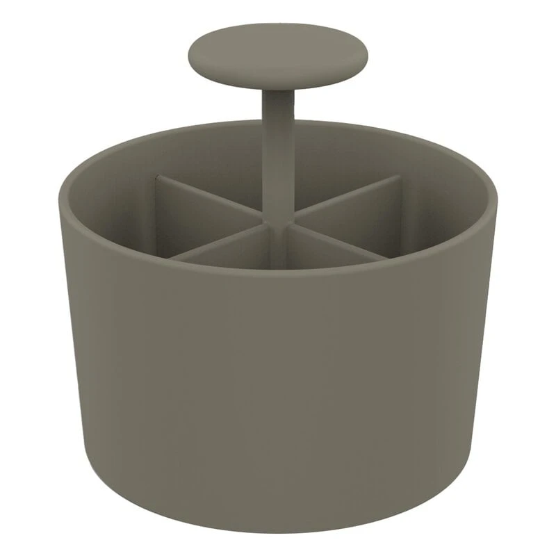 Lintexin Bowl-tarviketelineessä säilyvät siististi tallessa niin valkotaulun tussit kuin kynät, viivaimet ja muut toimistotarvikkeetkin. Pelkistetyssä telineessä on neljä lokeroa ja hauska koristenuppi, josta telineen voi myös nostaa. Bowl-kynätelineen on suunnitellut muotoilutoimisto Halleroed.