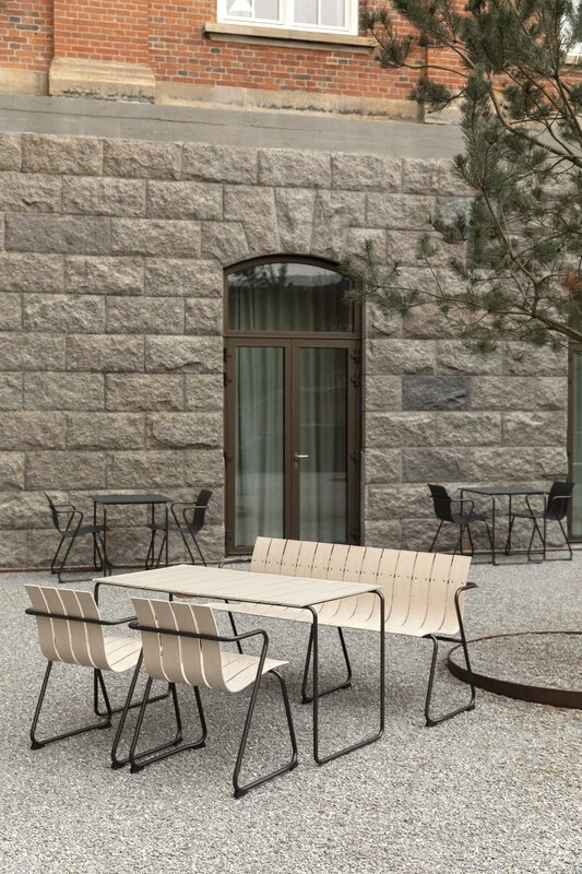Ocean-puutarhapenkki on tanskalaisen Materin uudelleentulkinta Nanna & Jørgen Ditzelin vuonna 1955 suunnittelemista ulkokalusteista. Sulavan muodon lisäksi Ocean-kalusteista tekee poikkeuksellisen niiden materiaali: kalusteet on valmistettu valtameristä peräisin olevasta muovijätteestä sekä vanhoista kalaverkoista. Ocean-sarjan istuimet ja pöytälevyt rakentuvat lujista kierrätysmuovisäleistä, ja ilmavan muotokielen viimeistelee mustaksi maalattu metallirunko. Kalusteiden kaikki osat pystyy aikanaan kierrättämään eteenpäin. Ocean-kokoelma palkittiin Wallpaper*-lehden muotoilupalkinnolla vuonna 2019.
