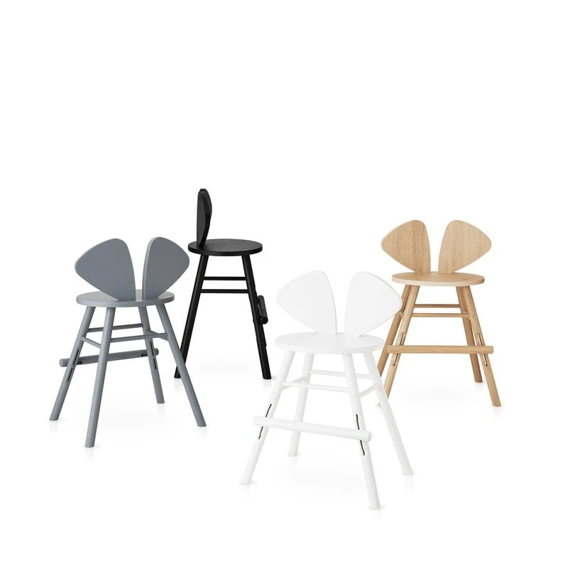 Nofredin Mouse-sarjan tuolien ilmettä hallitsevat pehmeän pyöristetyt muodot ja hurmaavan leikkisät selkänojat. Sarjan tuotteet on suunniteltu niin, että ne miellyttävät myös vanhempien silmää; pelkistetty muotokieli sekä hillityt värit sopivat täydellisesti osaksi modernia sisustusta niin lastenhuoneessa kuin muissakin kodin tiloissa. Pinta on maalattu niin, että tammen puunsyykuviot kuultavat kauniisti maalin läpi.