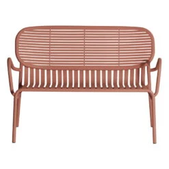 Week-end-sohva on osa ranskalaisen Petite Frituren alumiinisten ulkokalusteiden kokoelmaa. Viehättävien Weekend-istuinten tunnistettavimpiin piirteisiin kuuluvat niiden selkänojien ovaalinmuotoiset yksityiskohdat sekä vaaka- ja pystysuorien linjojen vuorottelu. Voit täydentää kahdenistuttavan sohvan mukavuutta vielä entisestään erikseen myytävien istuinpehmusteiden avulla.