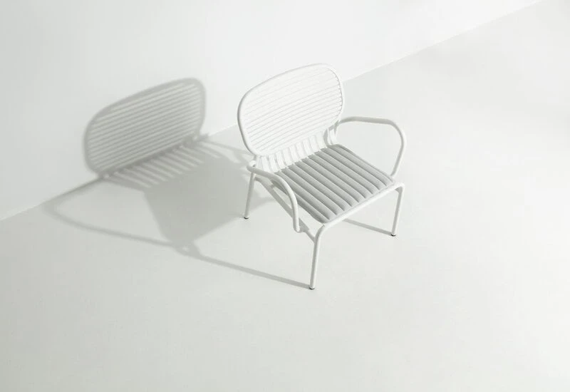 Week-end-istuintyynyllä lisäät juuri oikean annoksen ekstramukavuutta Petite Frituren ulkokalusteisiisi. Erityisesti Week-end-kokoelman alumiinisten puutarhatuolien päälle suunniteltu pehmuste kiinnitetään istuimeen tukevasti kahdella kiinnitysnauhalla. Pehmeällä polyuretaanivaahdolla täytetty tyyny on koristeltu Week-end-ulkokalusteistakin tutuilla linjakkaan geometrisilla muodoilla.