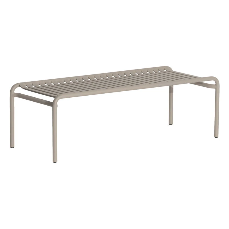 Matala Week-end-pöytä on osa ranskalaisen Petite Frituren alumiinisten ulkokalusteiden kokoelmaa. Linjakkaasti muotoiltu, ulkokäyttöön suunniteltu pitkä sohvapöytä sopii sulavasti yhteen saman sarjan penkin ja nojatuolien kanssa.