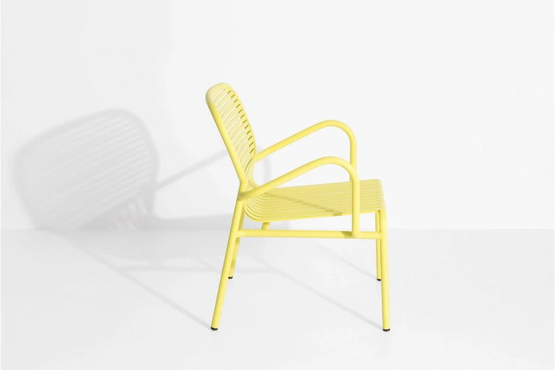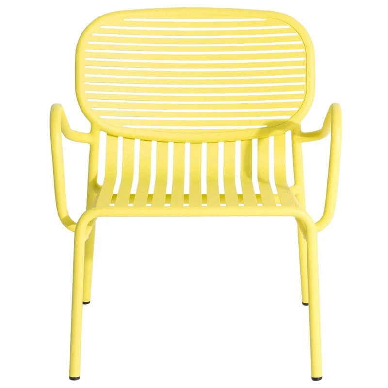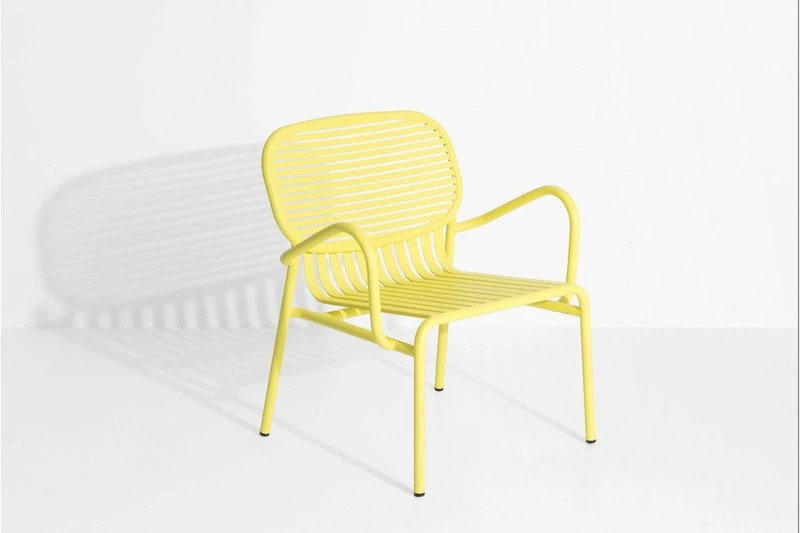 Week-end-nojatuoli on osa ranskalaisen Petite Frituren alumiinisten ulkokalusteiden kokoelmaa. Viehättävien Weekend-tuolien tunnistettavimpiin piirteisiin kuuluvat niiden selkänojien ovaalinmuotoiset yksityiskohdat sekä vaaka- ja pystysuorien linjojen vuorottelu. Kaikki kokoelman tuolit ovat pinottavia.