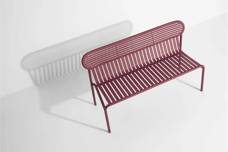 Week-end-penkki on osa ranskalaisen Petite Frituren alumiinisten ulkokalusteiden kokoelmaa. Week-end-penkin tunnistettavimpiin piirteisiin kuuluvat sen selkänojan ovaalinmuotoiset yksityiskohdat sekä vaaka- ja pystysuorien linjojen vuorottelu. Linjakkaasti muotoiltu, ulkokäyttöön suunniteltu penkki sopii sulavasti yhteen saman sarjan pöytien kanssa.