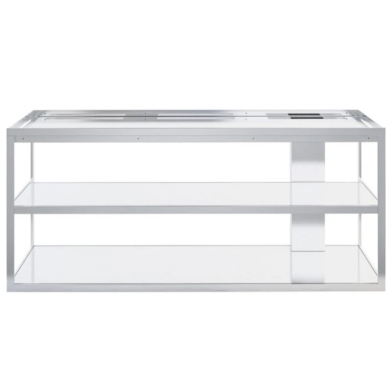 Röshultsin Open Kitchen 150 -runko on mitoitettu kolmelle Module-sarjan moduulille ja varustettu tukevilla hyllyillä, jotka tuovat säilytystilaa grillaustarvikkeille ja kesäkeittiön astioille.