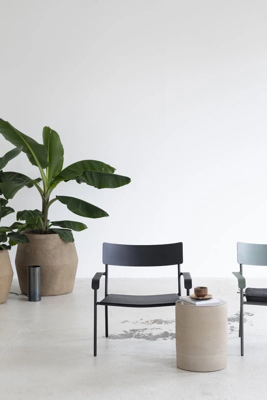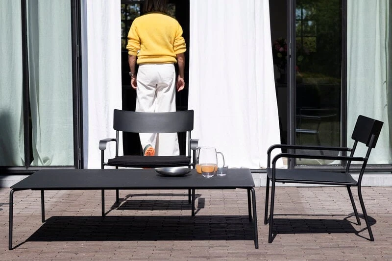 Seraxin August-tuoli on valmistettu jauhemaalatusta alumiinista, ja se sopii sekä sisä- että ulkokäyttöön. Leveä ja matalahko käsinojallinen tuoli sopii niin puutarhatuoliksi ulkona kuin ruokapöydän tai työpöydän ääreen sisätiloissa.