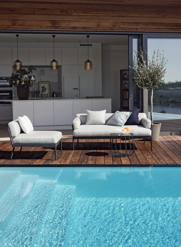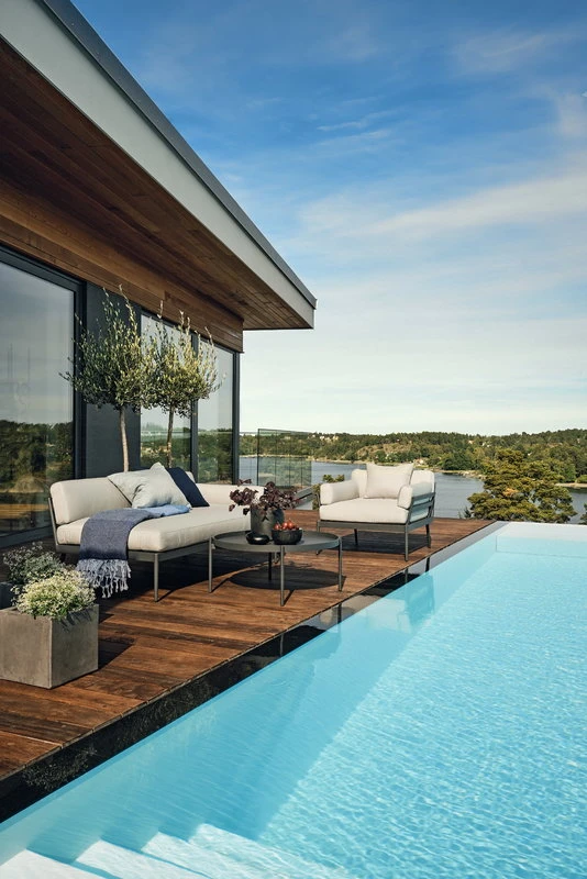 Susanne Grønlundin suunnittelema Anholt-ulkokalustesarja on saanut nimensä Tanskalle kuuluvan syrjäisen saaren mukaan. Tyylikkään pelkistetty Anholt on saanut inspiraatiota saaren karusta kauneudesta, ja se on suunniteltu kestämään pohjoisen kesien epävakaita sääolosuhteita. Sarjaan kuuluu nojatuolin lisäksi sohva sekä sohvapöytä ja jalaton pöytätaso, joista on mahdollista rakentaa haluamansa kokonaisuus parvekkeella, terassilla tai kesämökillä rentoutumiseen.