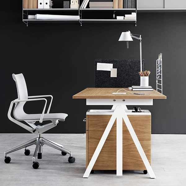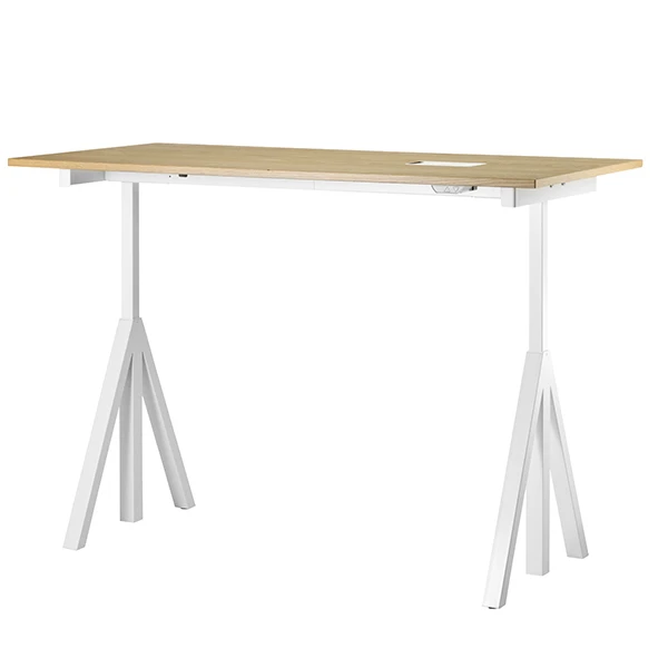 Sähköisesti korkeussäädettävä String Works -työpöytä parantaa työmukavuutta ja -ergonomiaa mahdollistaen myös työskentelyn seisten. Sähköjohdot saa siististi pois näkyvistä pöydässä olevan johtosäilyttimen ansiosta.