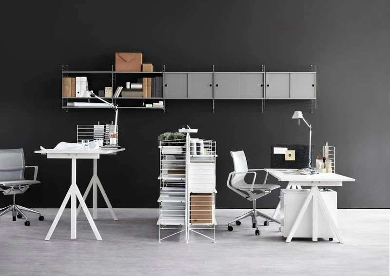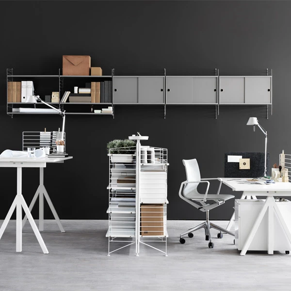 Arkkitehti Anna von Schewen ja designer Björn Dahlström suunnittelivat täysin uuden sarjan huonekaluja, jotka käyvät yhteen String System -hyllykalusteiden kanssa. String Works koostuu joustavaan sekä muunneltavaan työympäristöön tarkoitetuista kalusteista. String Works -sarjan kalusteita voi käyttää niin työpaikalla kuin kotonakin.