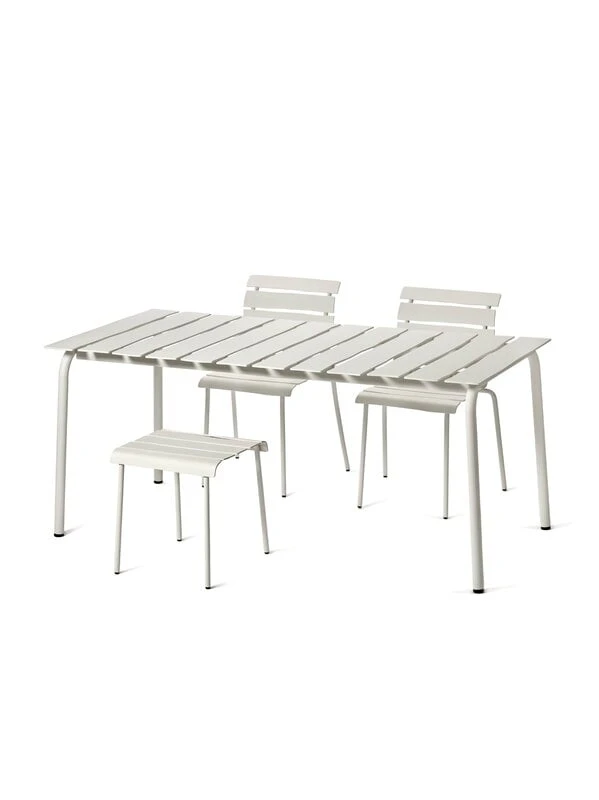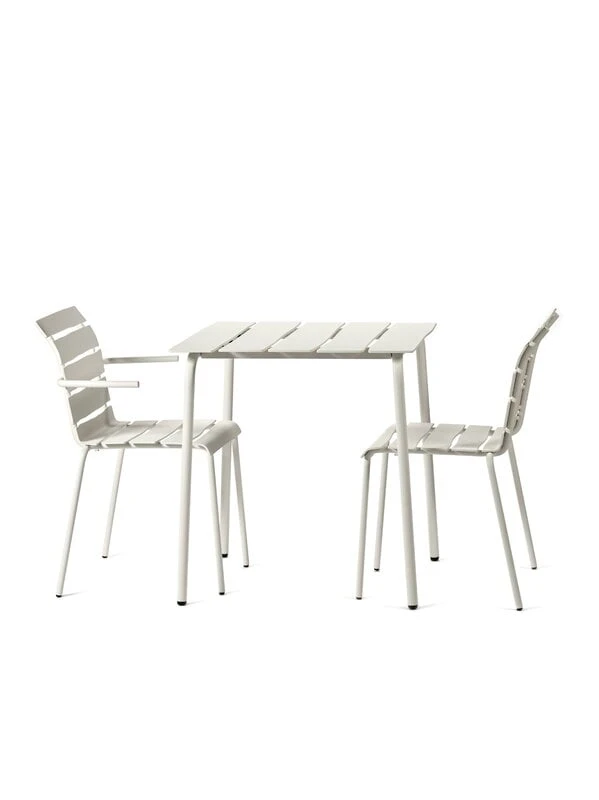 valerie objectsin Aligned-tuolin näennäisen yksinkertainen ilme yllättää: epäsymmetriset, alumiinista valmistetut säleet antavat klassisen vähäeleiselle puutarhatuolille täysin uudenlaisen persoonan. Tunnetun hollantilaissuunnittelija Maarten Baasin kekseliäs ja leikkisä kädenjälki on vahvasti esillä jokaisessa yksityiskohdassa – Aligned-tuoli on luotu täsmällisesti Baasin lyijykynäpiirroksen pohjalta. Kaunis ja kestävä ulkokäyttöön soveltuva tuoli sopii niin puutarhapöydän ääreen kuin kesämökin terassillekin ja sen hurmaavan persoonallinen ilme ihastuttaa vuodesta toiseen.