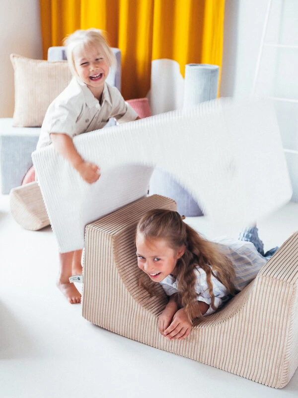 Wigiwaman Rainbow-setti suorastaan kutsuu lapsia leikkimään ja haastamaan omaa mielikuvitustaan. Kekseliäs leikkisetti koostuu kolmesta erimuotoisesta moduulista, joilla voi leikkiä sekä yksinään että yhdessä: monipuolinen setti taipuu niin tuoliksi, pöydäksi, jalkarahiksi kuin majaksikin. Pehmeät, irrotettavat päälliset on valmistettu vakosametista, joka on alun perin peräisin kierrätetyistä PET-muovipulloista – jo kertaalleen käytetty muovi saa siis uuden elämän lasten leluna! Ympäristöystävällinen Rainbow ilahduttaa eritoten lastenhuoneessa, mutta sen tyylikäs ilme takaa, etteivät aikuisetkaan pahastu, jos setin eri osat välillä ajautuvat kodin muiden huoneiden puolelle.